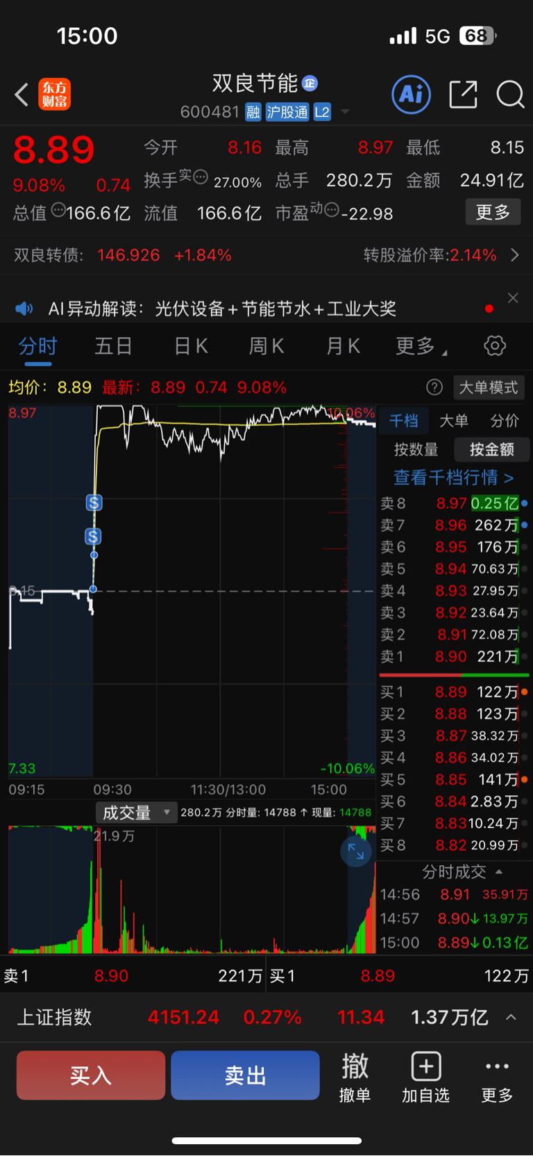 $双良节能(SH600481)$ 我竞价就跑了