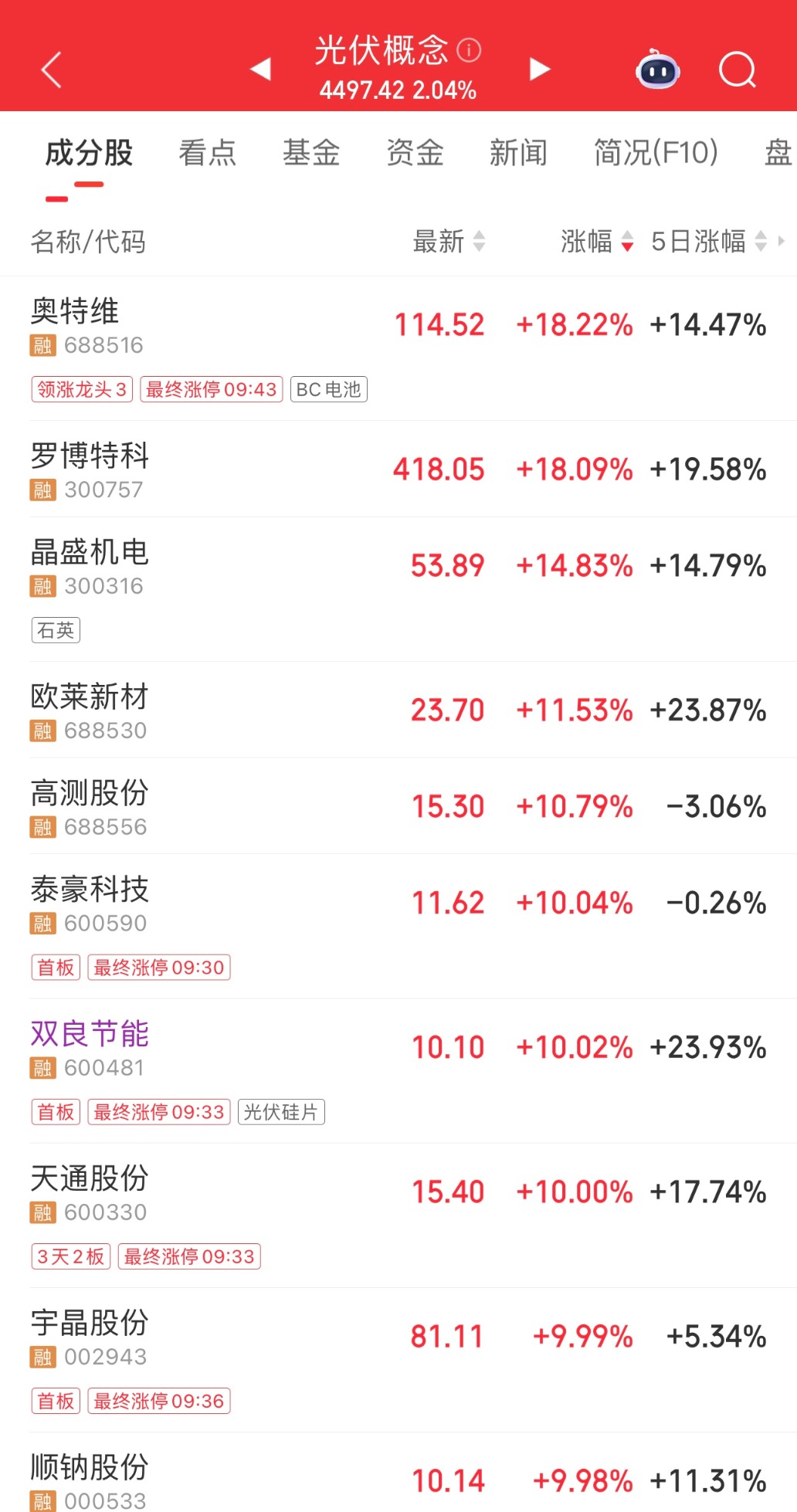 上证报中国证券网讯2月3日早盘,太空光伏概念震荡拉升,截至10时整,双良节能涨停,奥特维涨超18%,高测股份涨超10%,迈为股份、钧达股份等多股上涨。