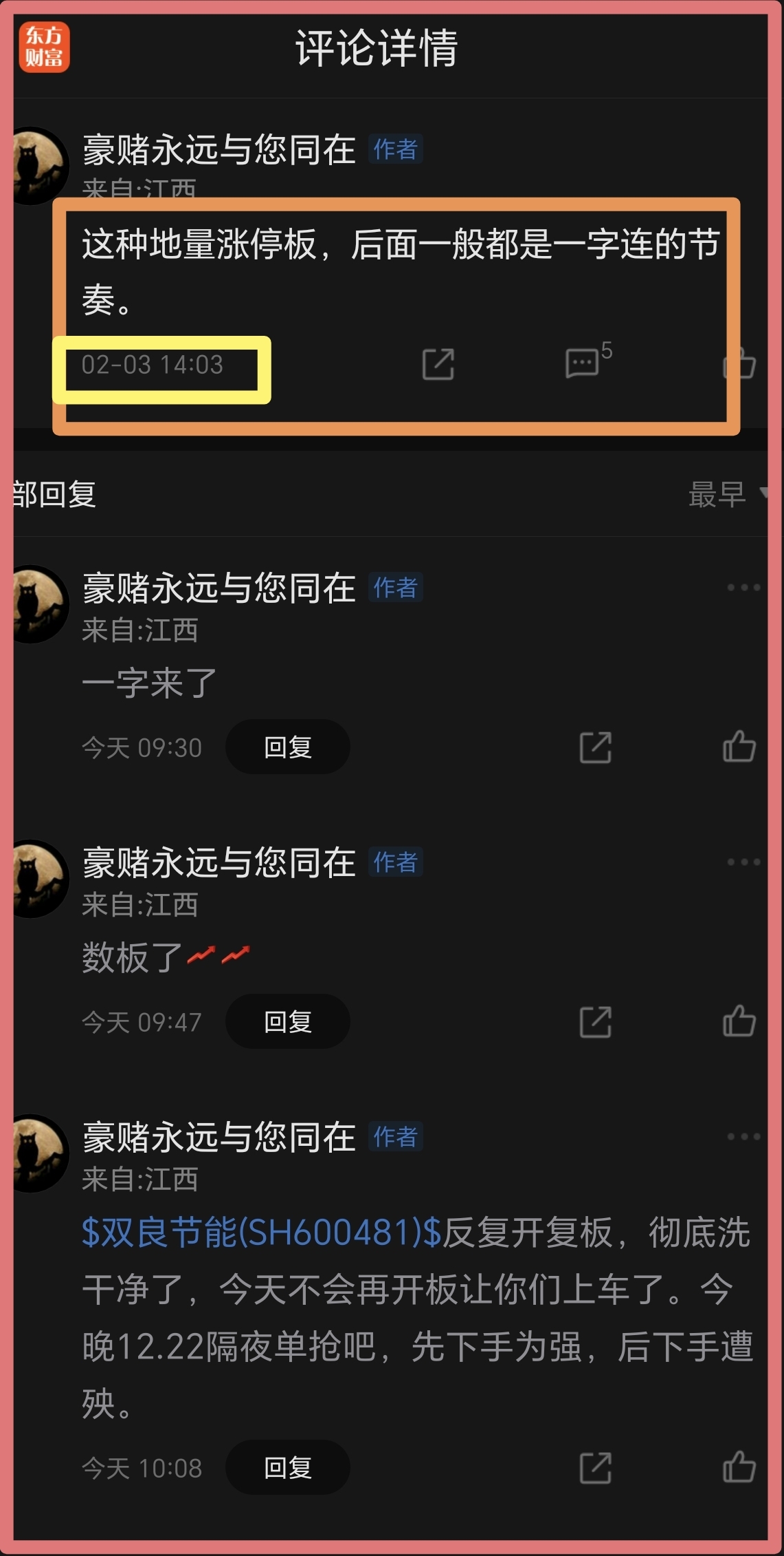 $双良节能(SH600481)$ 反复开复板,彻底洗干净了,今天不会再开板让你们上车了。前天晚上吹口哨10.10元,昨天盘中又反复口哨提示要连板,你们就是拿不住啊。今晚12.22隔夜单抢吧,先下手为强,后下手遭殃。