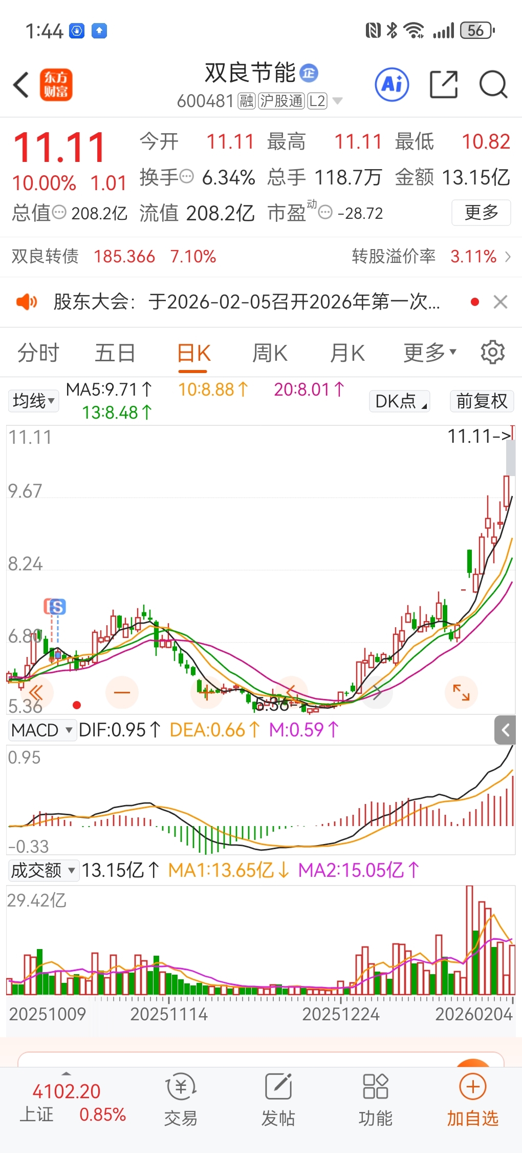 $双良节能(SH600481)$ 卖早了