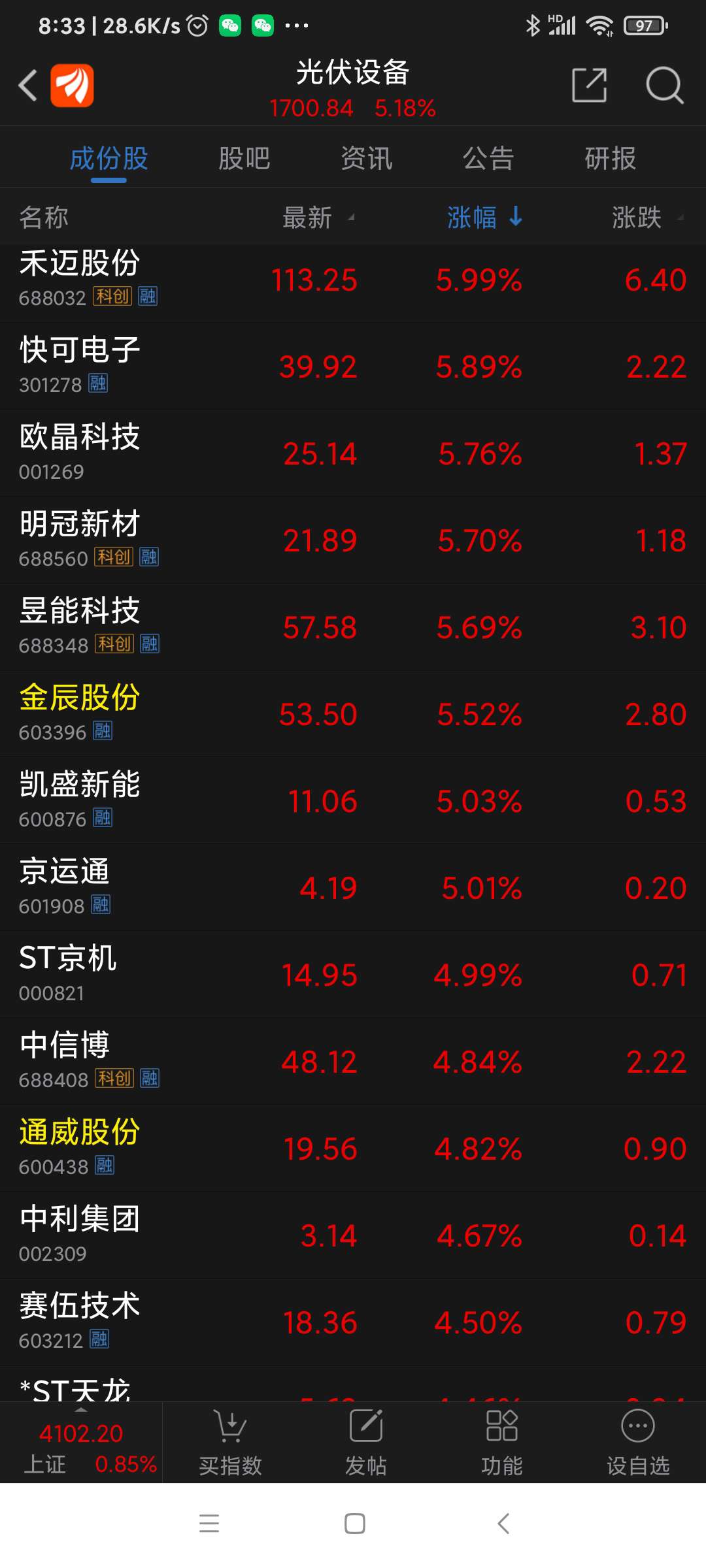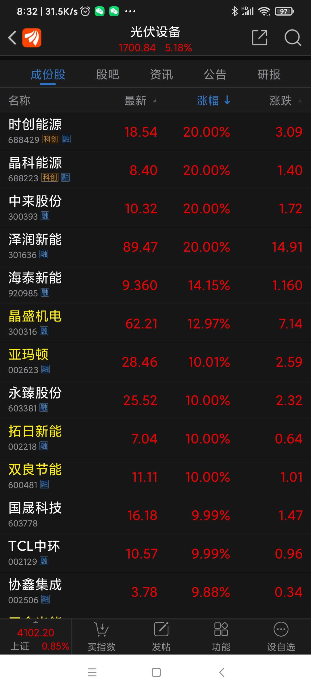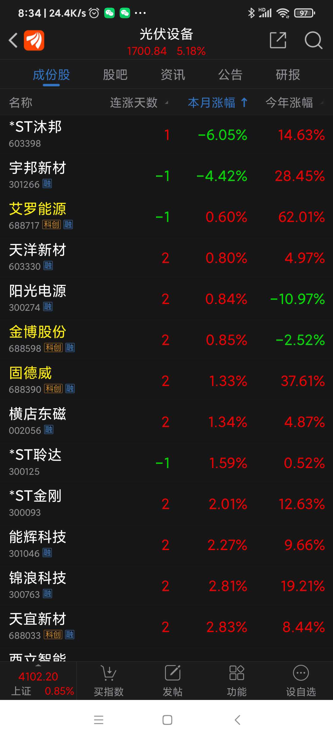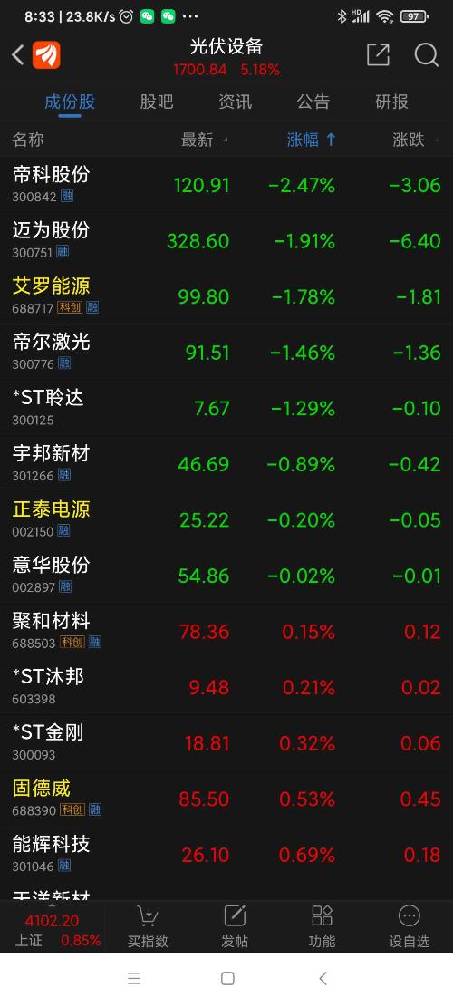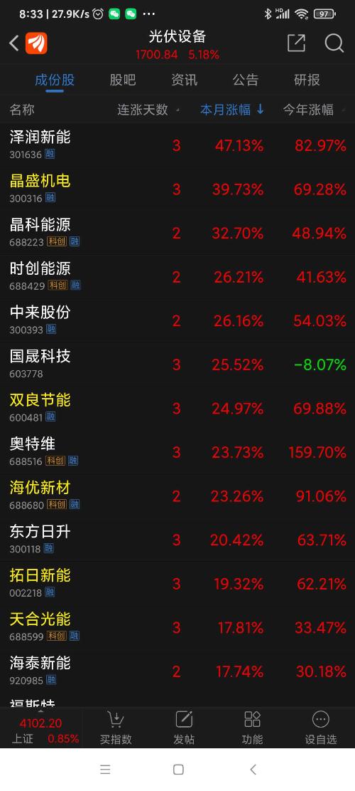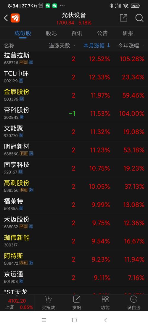 光伏板块昨日表现。