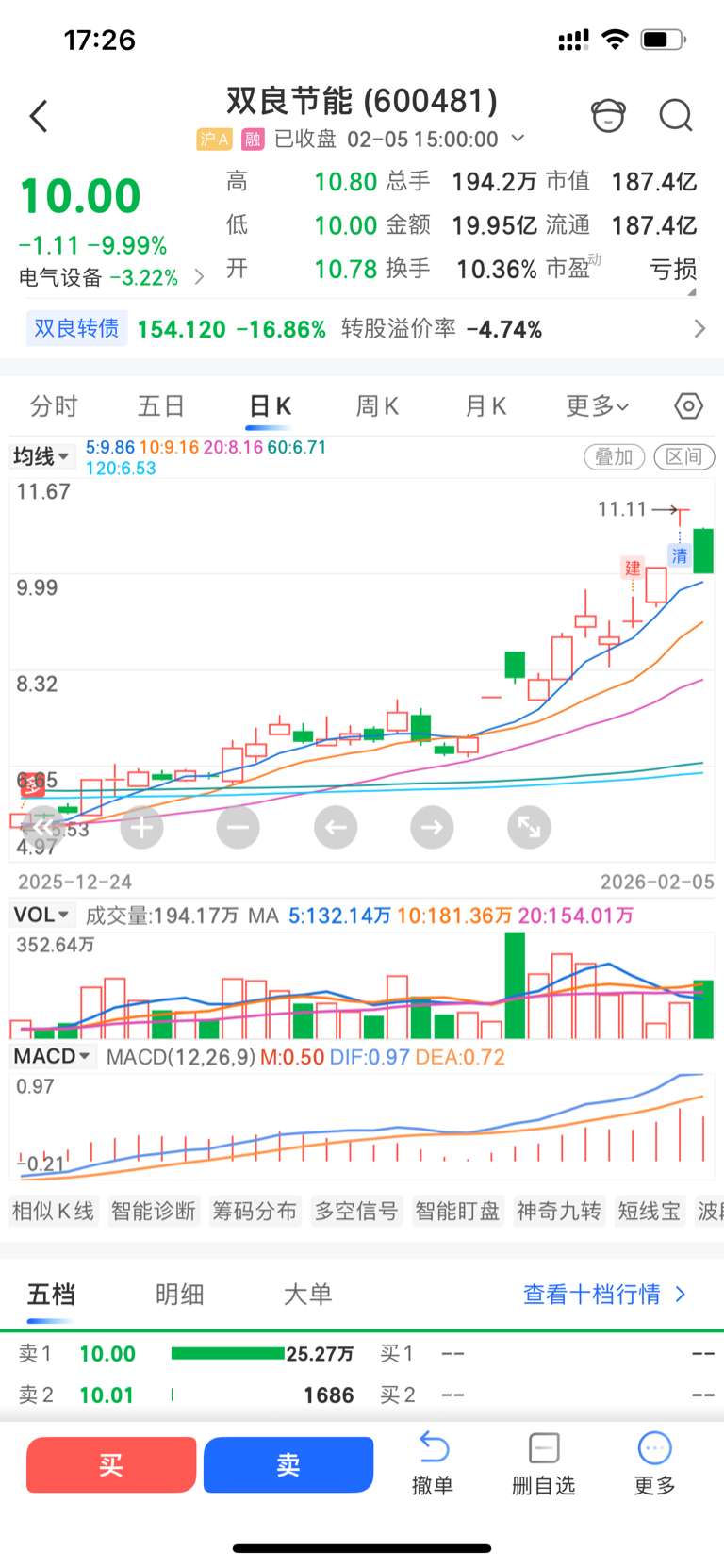$双良节能(SH600481)$ 昨天早上被这顶给吓跑了,后来封了一天板,还一度有些怀疑买错了。结果今天回头看,是真幸运