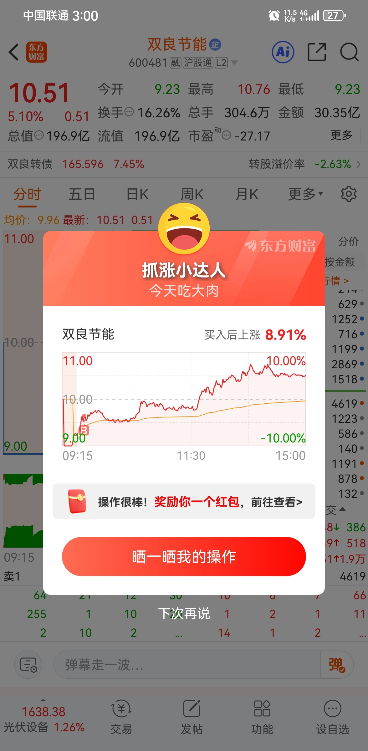不多说,早上立马卖了美能源过来了,我知道他要来接我上车了,也就满仓,不是我炫耀,
