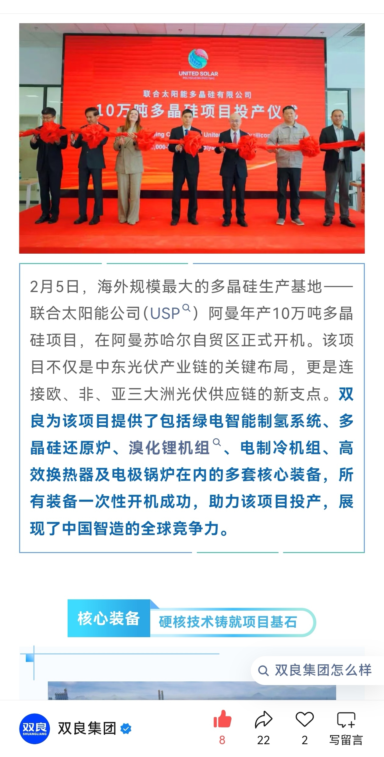 $双良节能(SH600481)$ 双良装备助力联合太阳能公司(USP)阿曼年产10万吨多晶硅项目,展现中国智造的全球竞争力