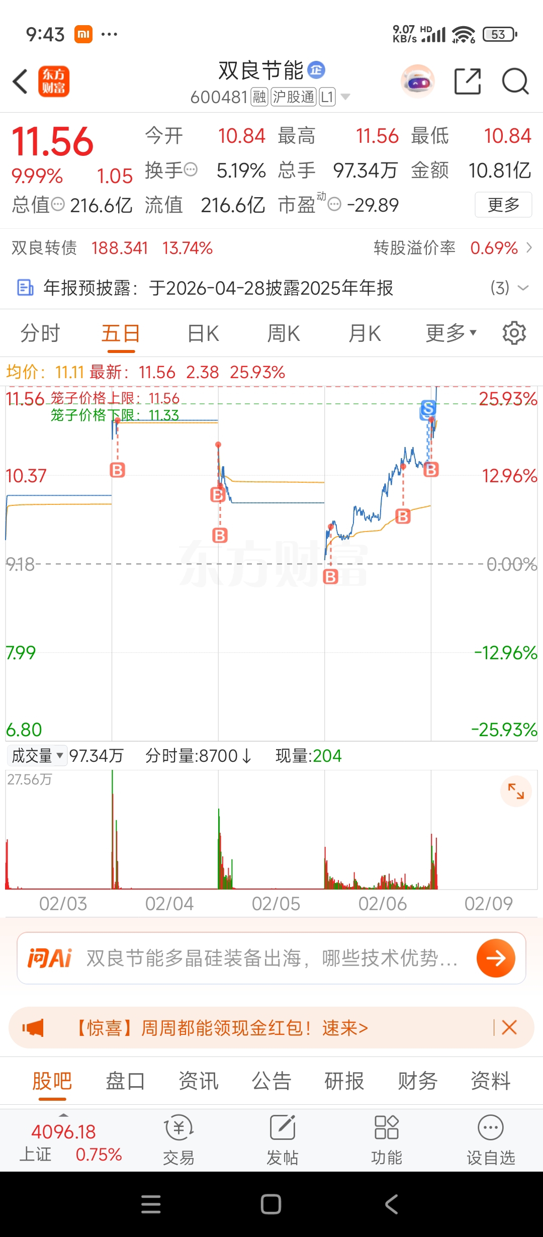 $双良节能(SH600481)$ 再次看高一线,强势突破前高压力位
