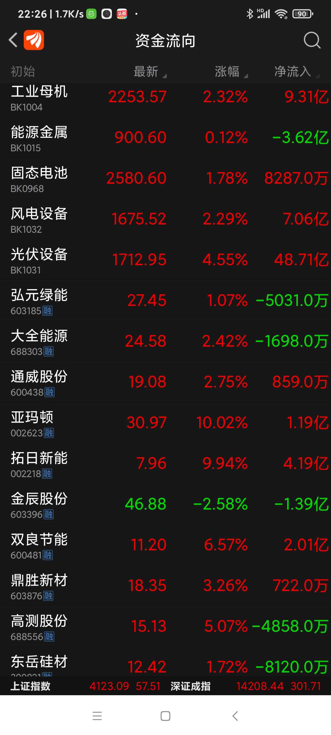 双良节能等八股,今日资金净流入一览。