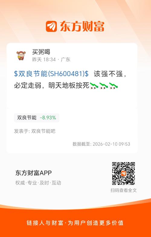 $双良节能(SH600481)$  该强不强,必定走弱,明天地板按死
