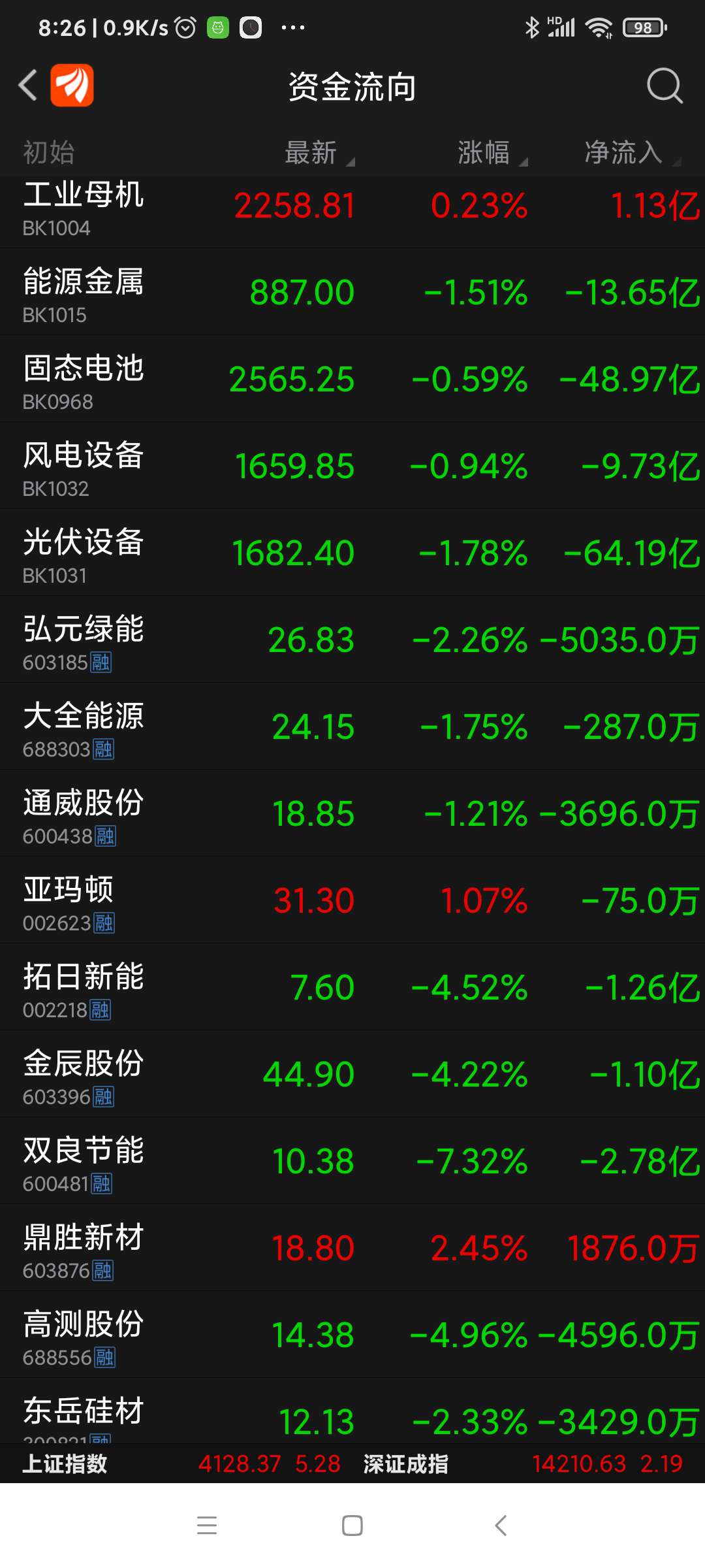 双良节能等八股,昨日资金净流入一览。