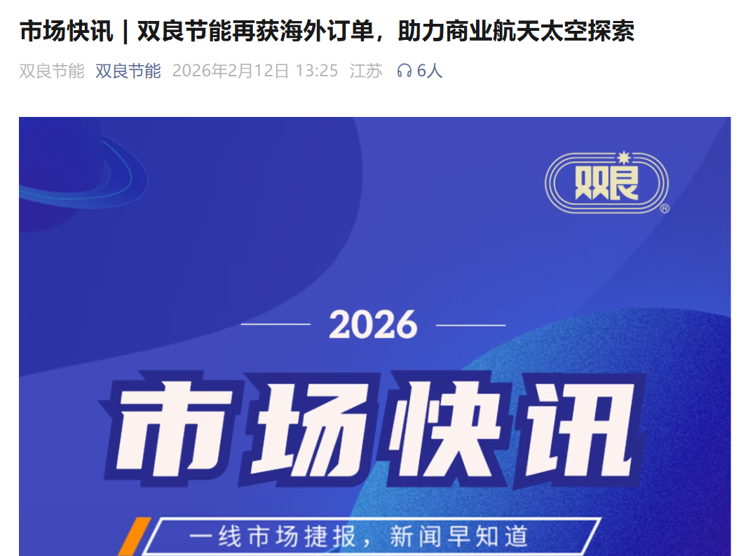 2月12日13时25分,双良节能在微信公众号发布题为《双良节能再获海外订单,助力商业航天太空探索》的市场快讯。