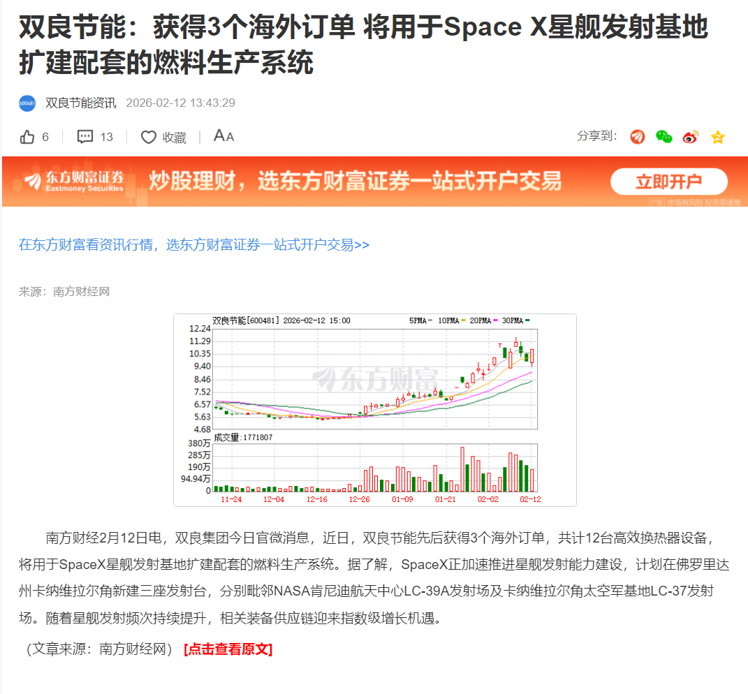 双良节能间接供货 SpaceX,商业航天赛道打开成长新空间