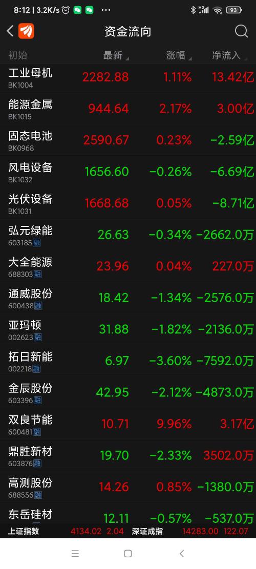 双良节能等八股,昨日资金净流入一览。