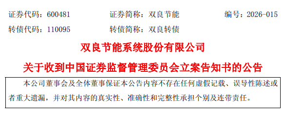 2月27日晚间,光伏硅片主要厂商双良节能(600481)公告称,公司2月27日收到中国证监会下发的《立案告知书》。因公司涉嫌信息披露误导性陈述等违法违规行为,根据《中华人民共和国证券法》《中华人民共和国行政处罚法》等法律法规,决定对公司立案。