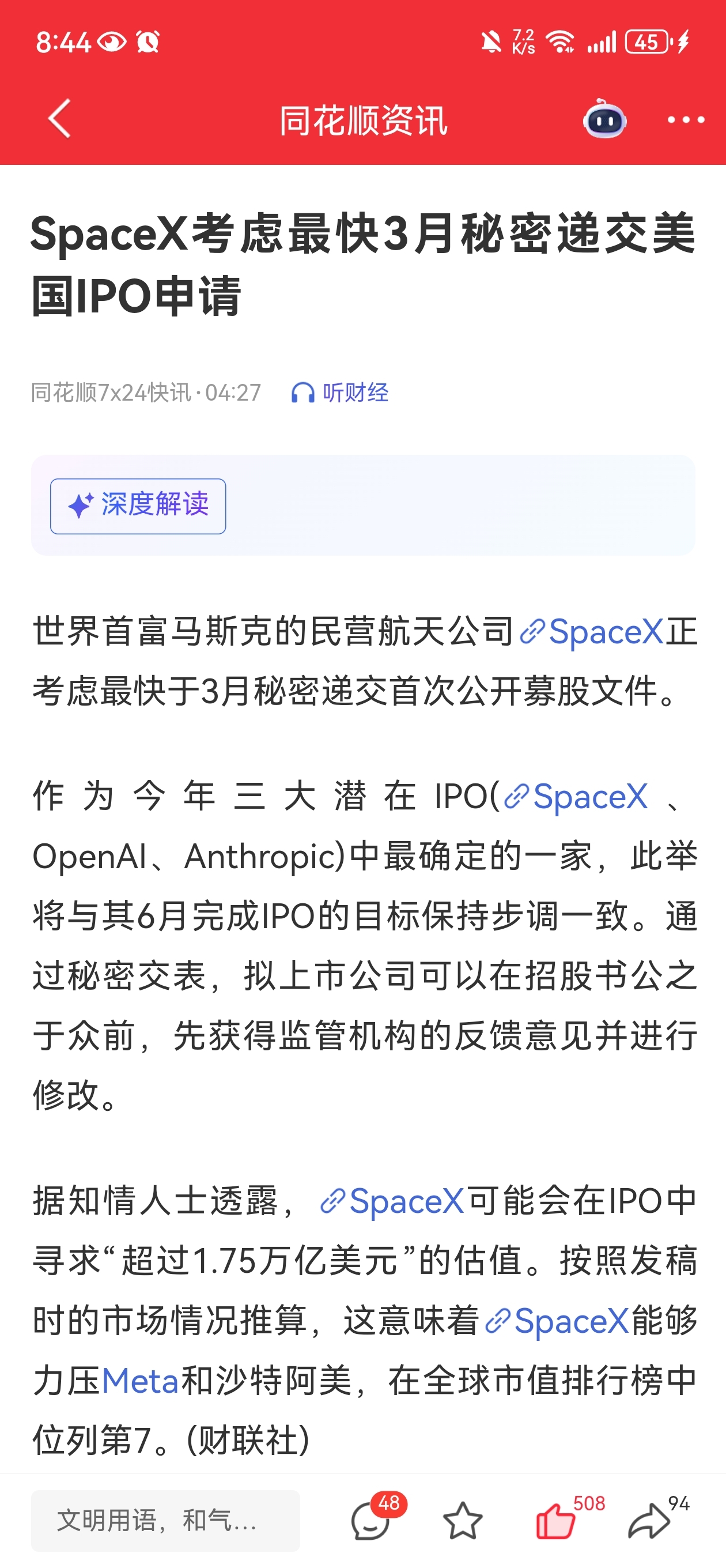 1.和SpaceX有合作2.首例多晶硅订单3.利空前四个交易日已消化。一切用事实