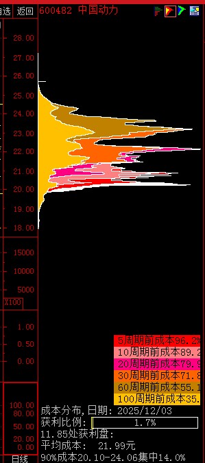 从筹码分布来看,中国动力平均持股成本21.99元;
