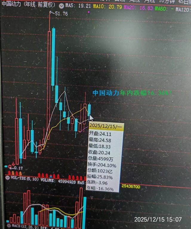 截止12月15日收盘,中国动力年内跌幅16.36%!