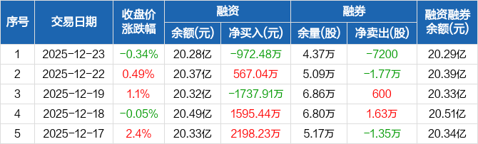 中国动力:融资净偿还972.48万元,融资余额20.28亿元(12-23)
