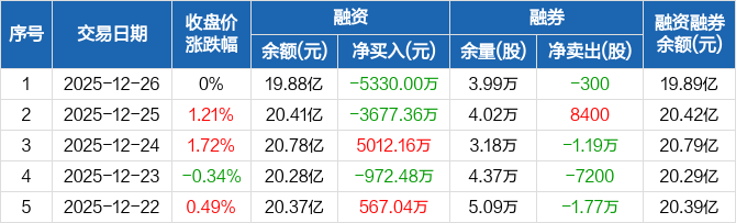 中国动力:融资净偿还5330万元,融资余额19.88亿元(12-26)