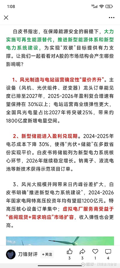 我看今天白皮书中,最利好的是新型储能与绿电。新型储能,福能有抽水蓄能、压缩空气储