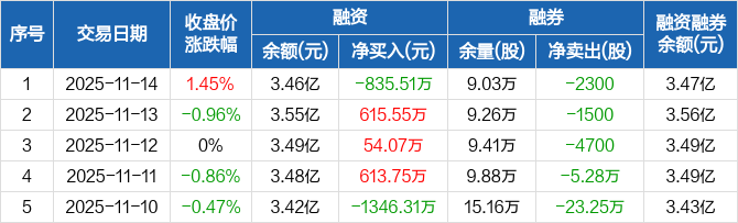 福能股份:融资净偿还835.51万元,融资余额3.46亿元(11-14)