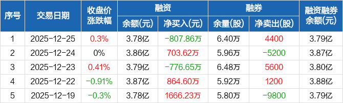 福能股份:融资净偿还807.86万元,融资余额3.78亿元(12-25)