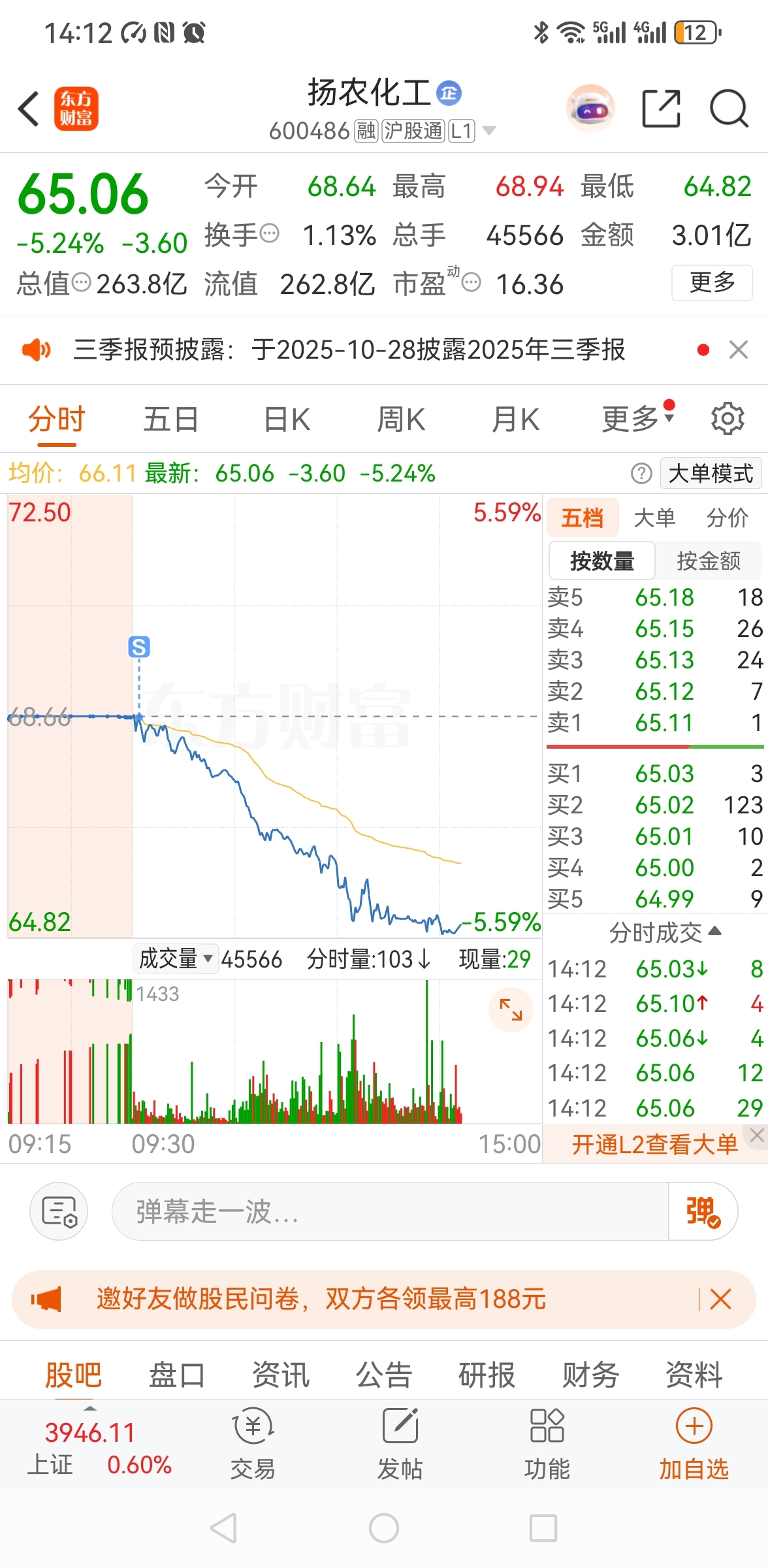 $扬农化工(SH600486)$ 还好早上清仓了,一路向下