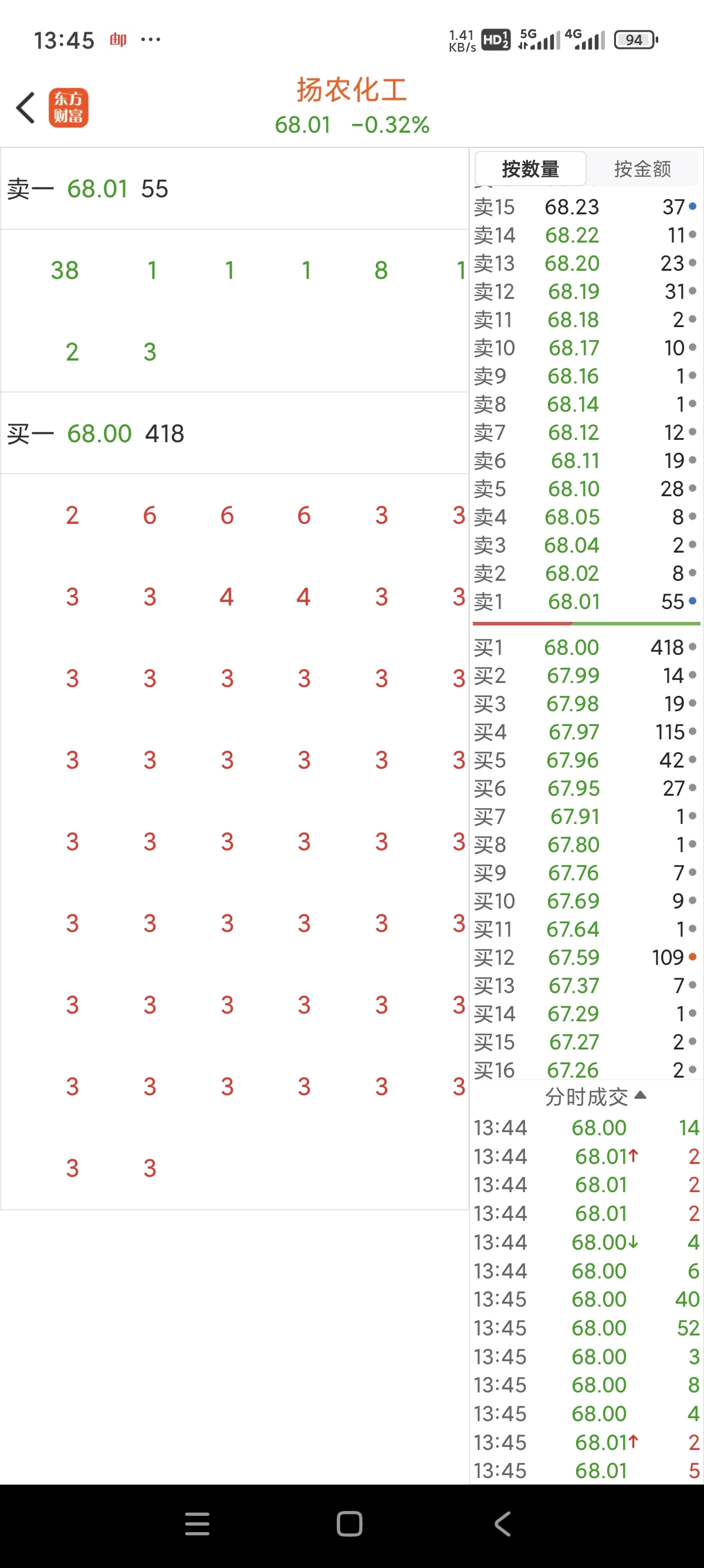 $扬农化工(SH600486)$ 主力拆小单悄悄的买