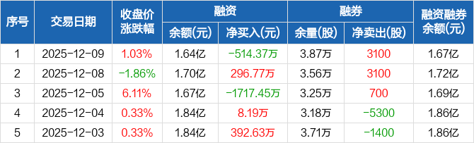 扬农化工:融资净偿还514.37万元,融资余额1.64亿元(12-09)