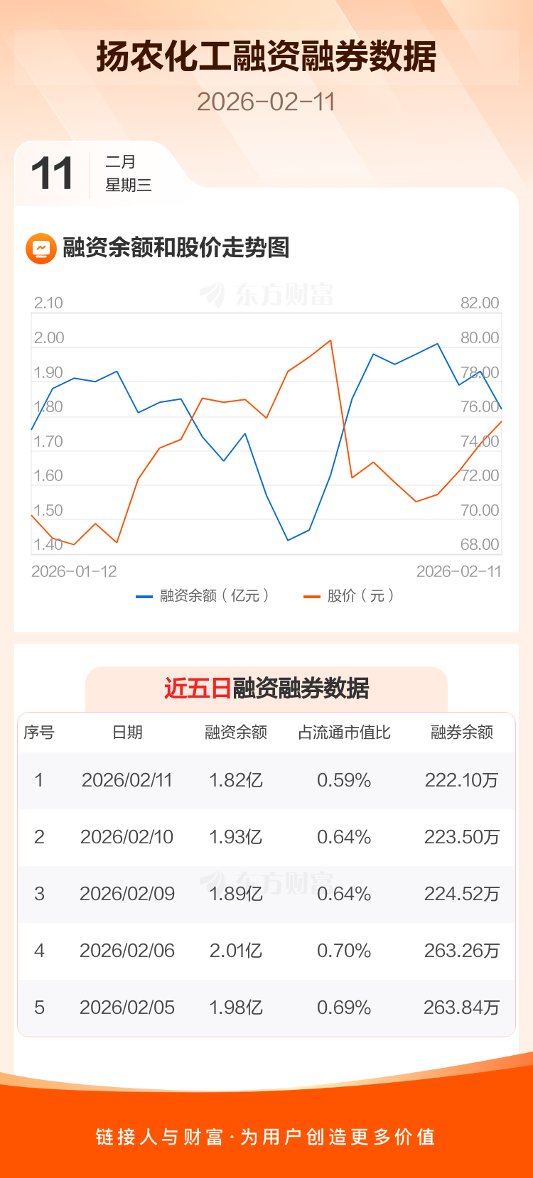 交易所最新数据显示,扬农化工于2026年2月11日获融资买入3289.23万元,融资偿还4380.14万元,当日融资净偿还1090.91万元。目前,该股融资余额1.82亿,占流通市值比例为0.59%。