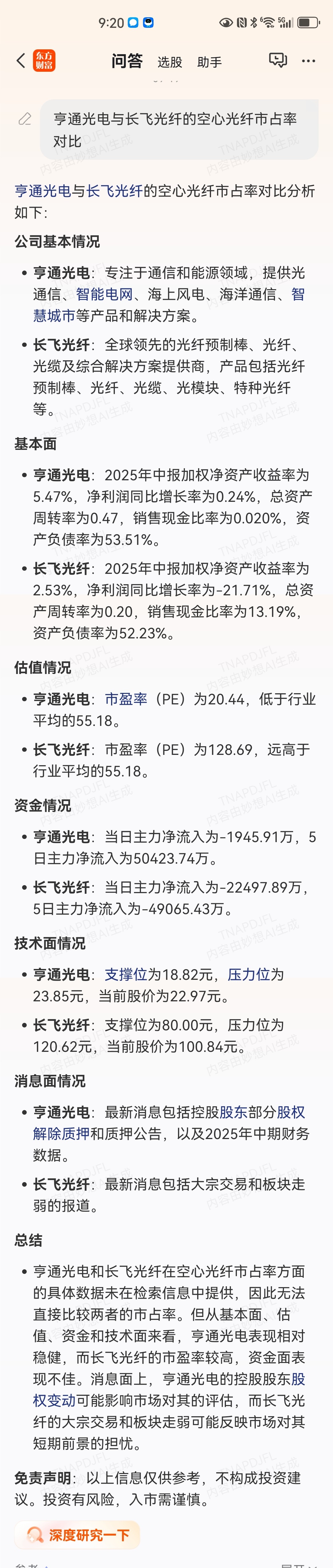 $亨通光电(SH600487)$ 都是对比长飞光纤涨三倍,亨通光电涨30个点,现在妙想来回答你空心光纤对比。