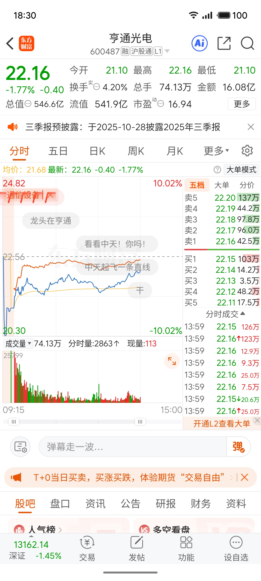 $亨通光电(SH600487)$ 没有跟中天走,完全跟板块同步