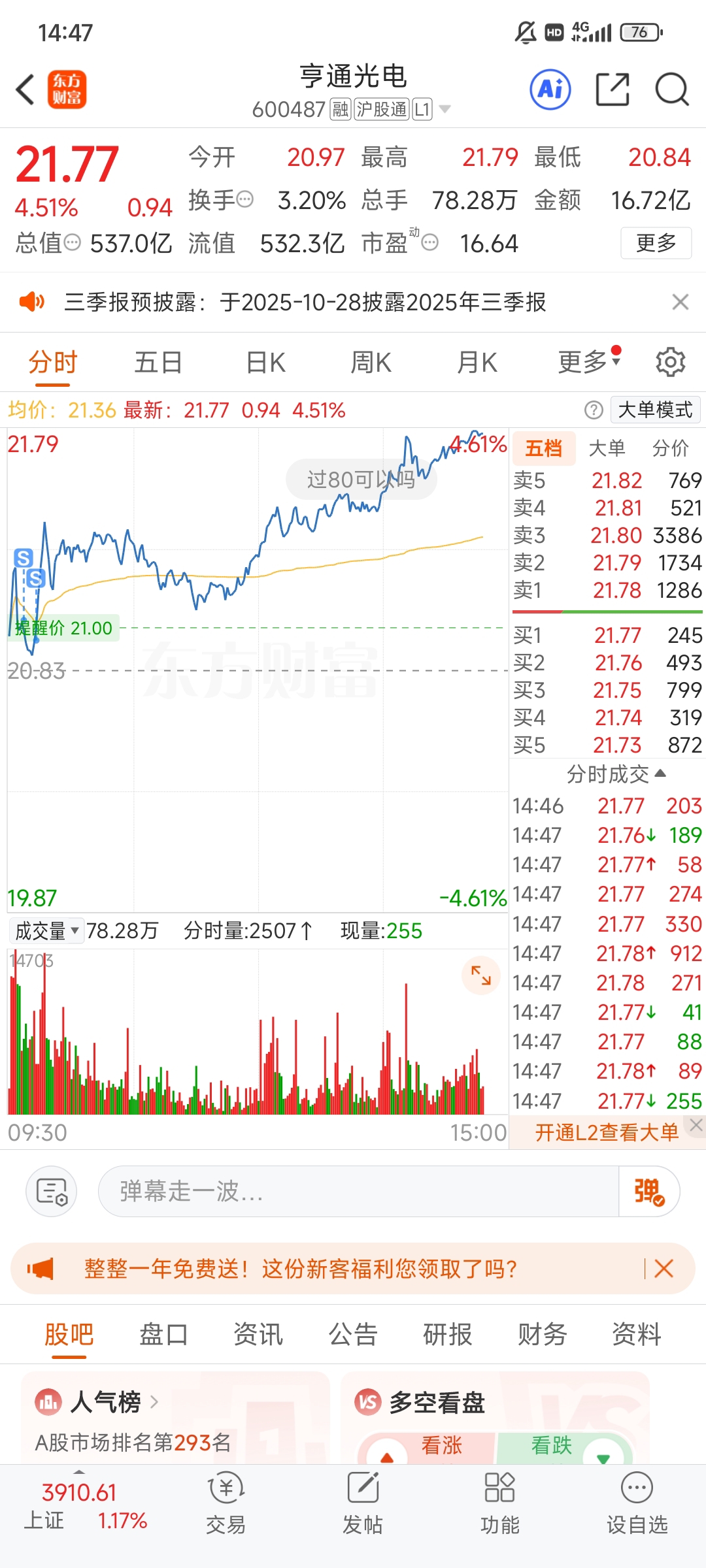 $亨通光电(SH600487)$ 看来我不适合炒股