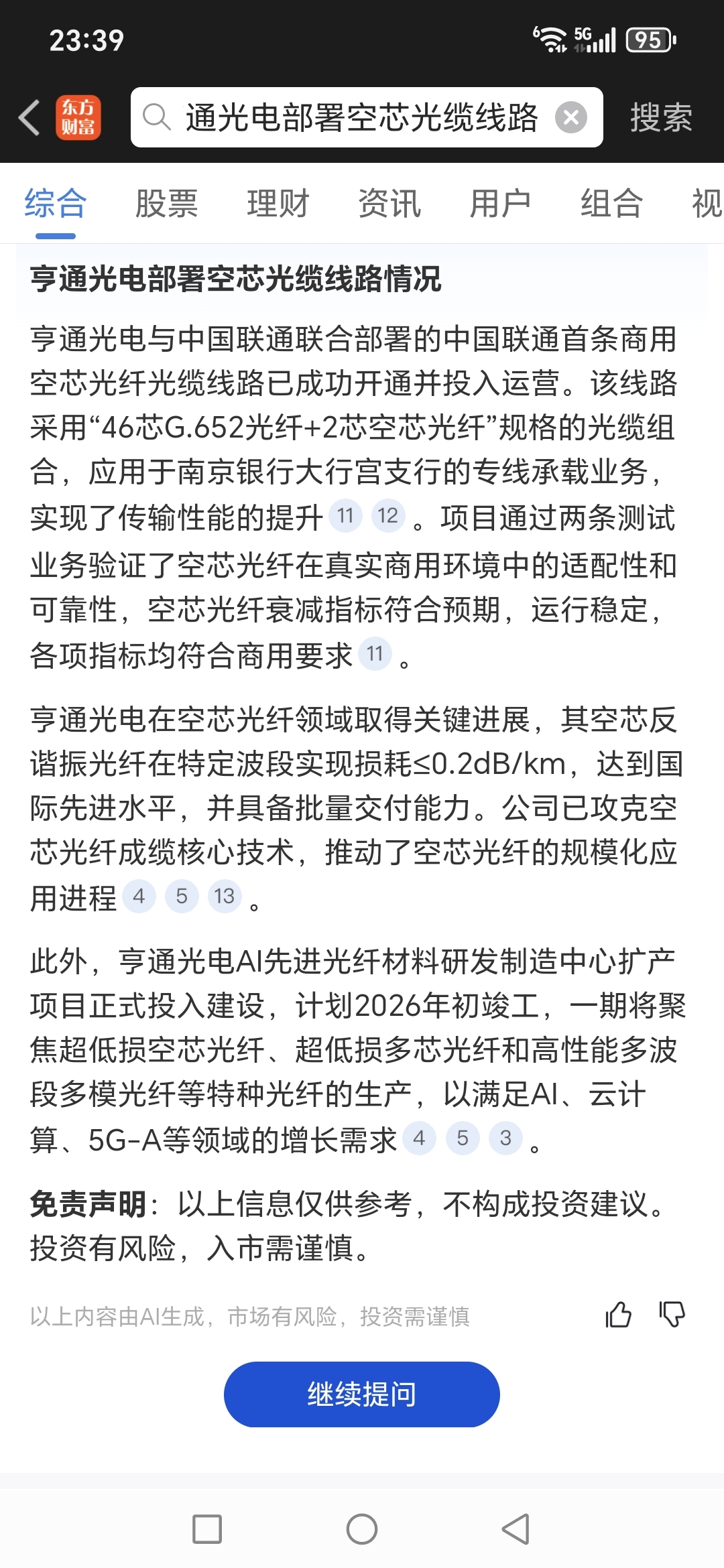 $亨通光电(SH600487)$ 亨通光电与中国联通联合部署首条商用空心光纤光缆投入运营: