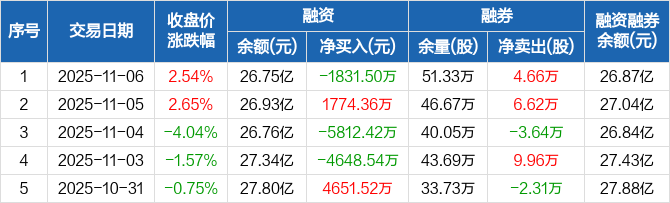 亨通光电:融资净偿还1831.5万元,融资余额26.75亿元(11-06)