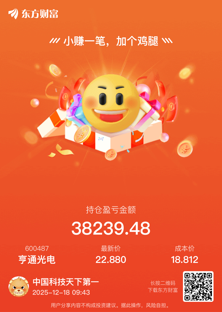 $亨通光电(SH600487)$ 才买了20天就赚了这些,虽然肯定比不过各位大哥们,但也很满足了!减仓一些,留下的继续发财!