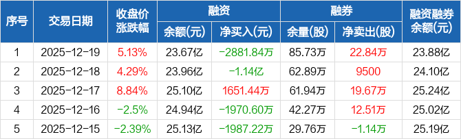 亨通光电:融资净偿还2881.84万元,融资余额23.67亿元(12-19)