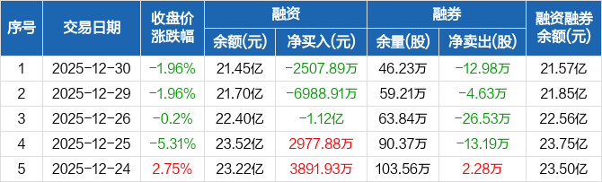 亨通光电:连续3日融资净偿还累计2.07亿元(12-30)