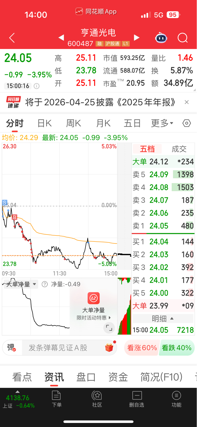 $亨通光电(SH600487)$ 老子信了你的邪,