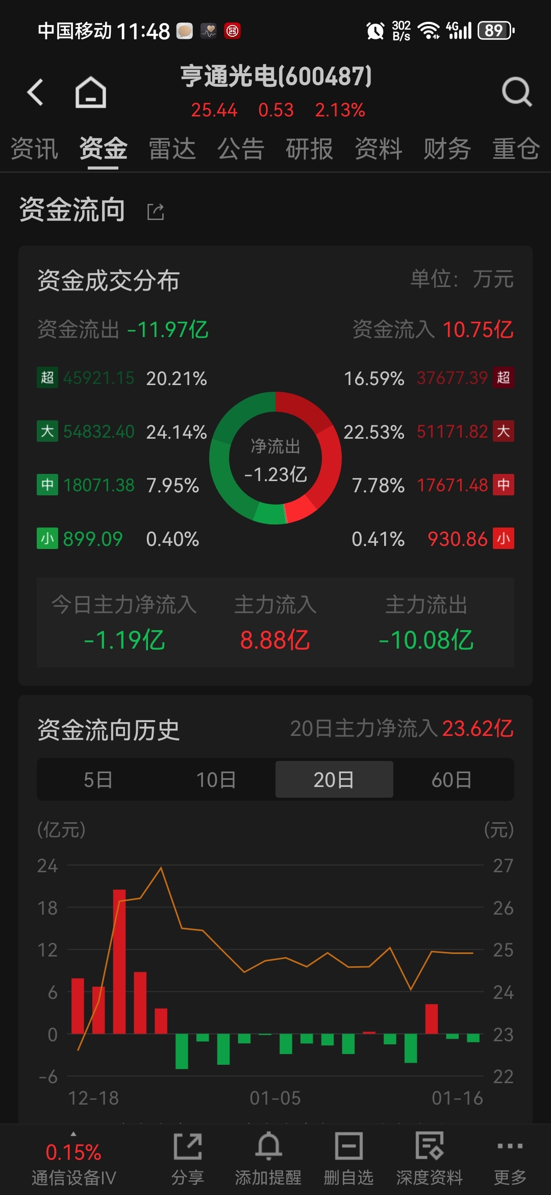 $亨通光电(SH600487)$ 无量拉升主力资金跑路