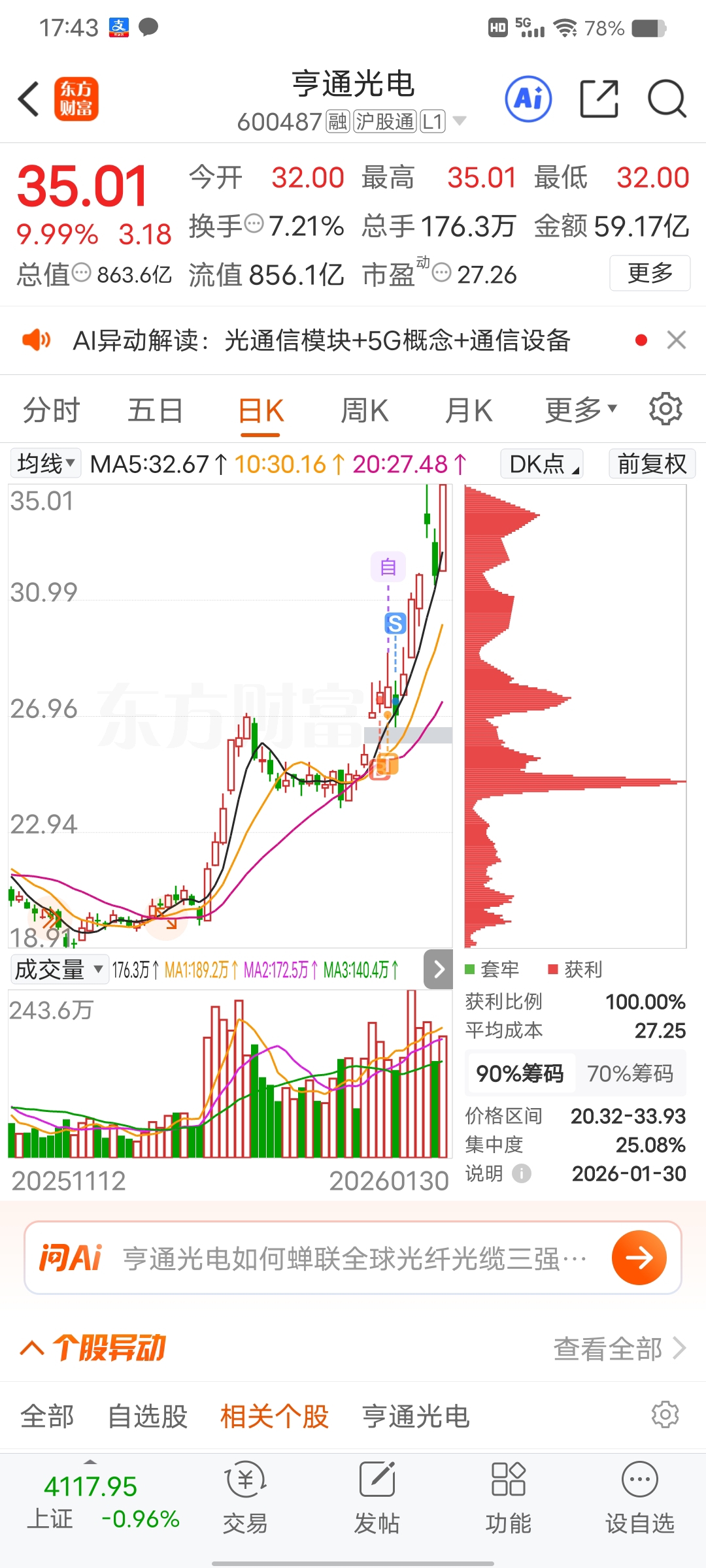 $亨通光电(SH600487)$ 二十七八块钱拿的赚一百多走了