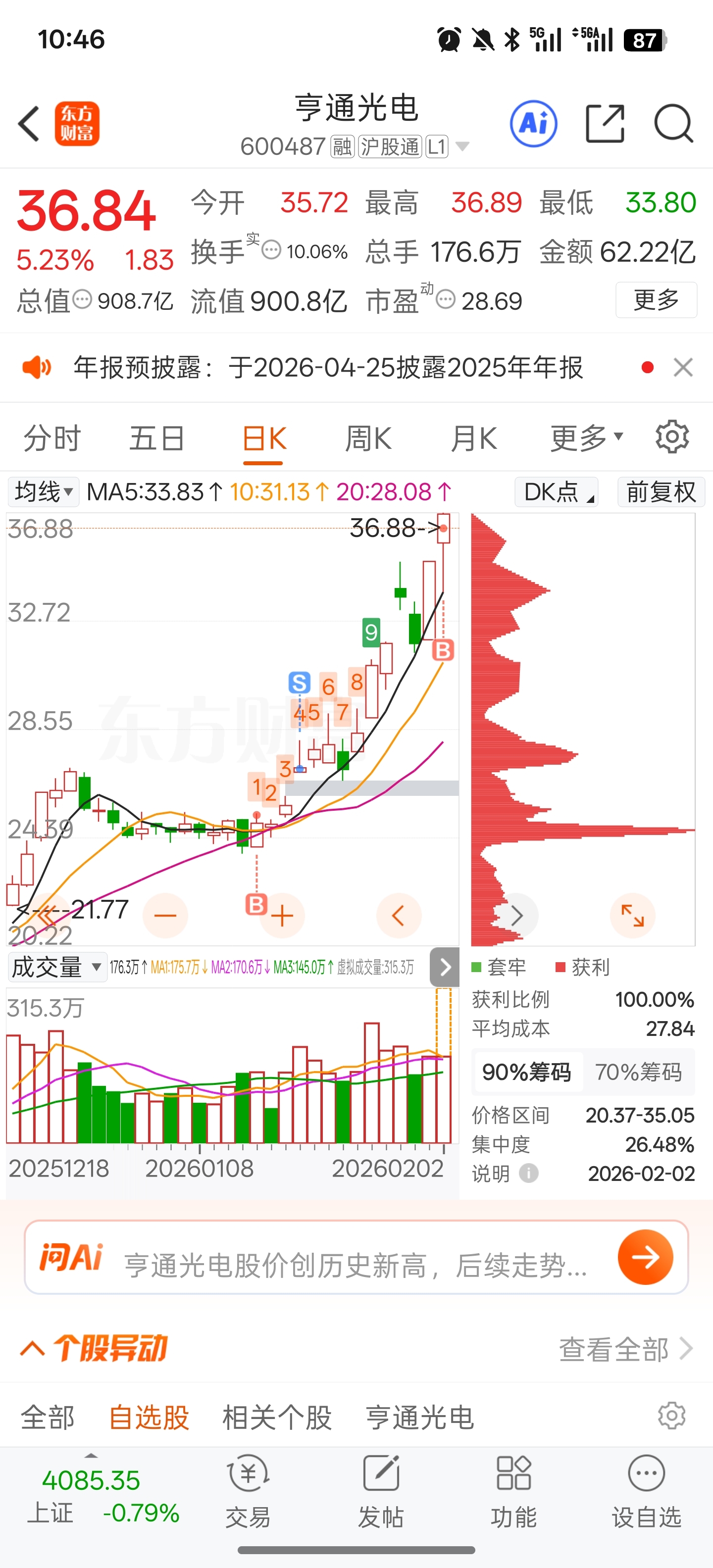 $亨通光电(SH600487)$ 我回来了兄弟们