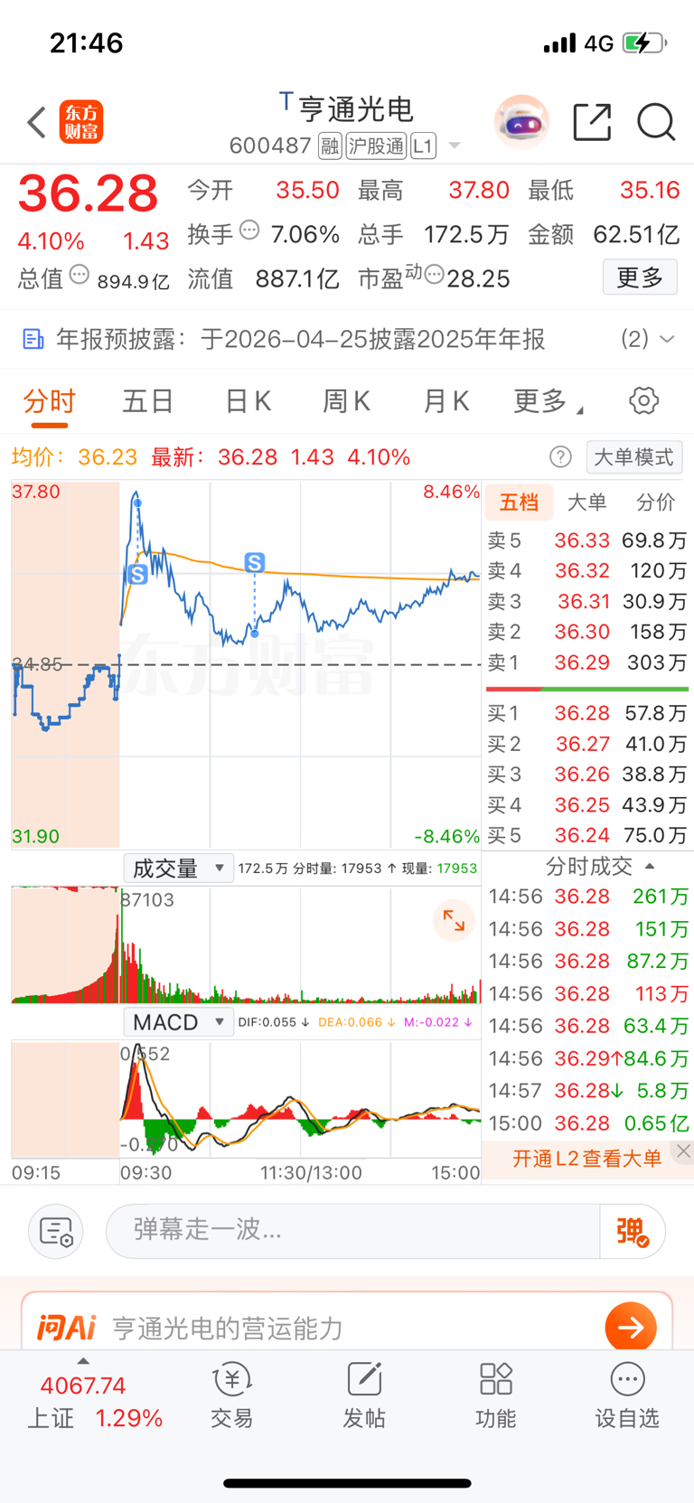 $亨通光电(SH600487)$ 如果明后天大涨就是卖飞了,但是利好滞涨的话就是计价了