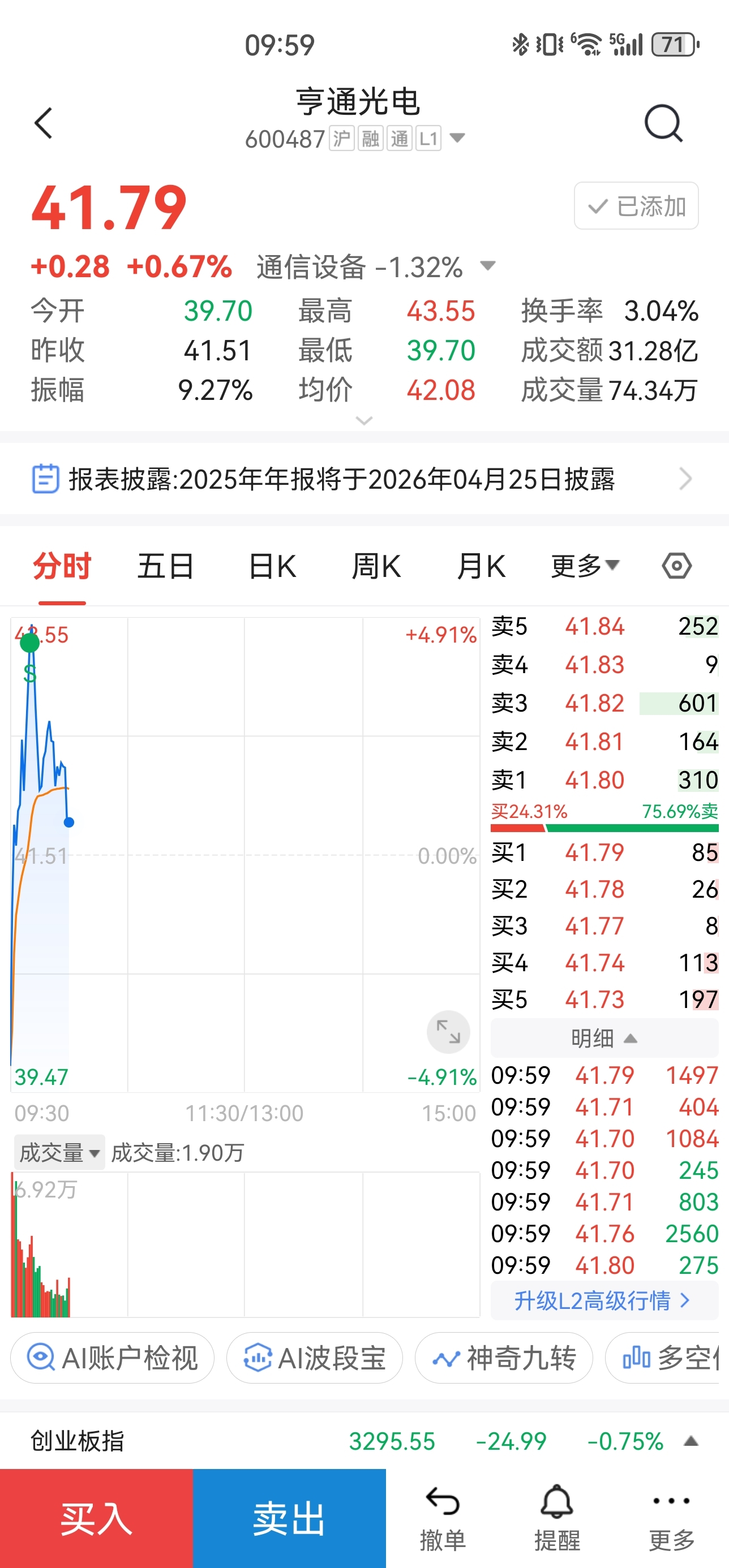$亨通光电(SH600487)$ 落袋为安,希望给我回撤上车的机会