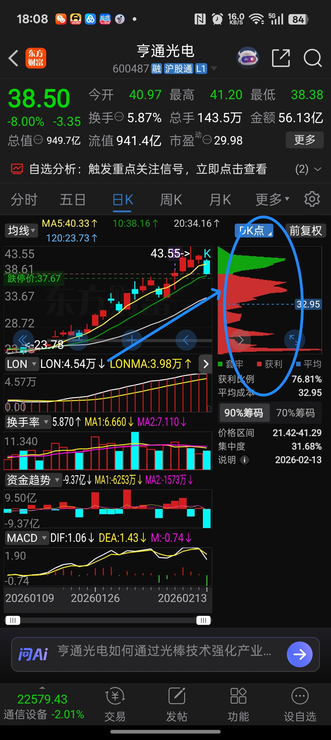 $亨通光电(SH600487)$ 筹码峰没有上移,甚至根本没动,极限调整位置20日均线。可是,那是几乎不会发生的事,即使有,也是加仓的好时机,股价会迅速探底回升,愿大家都在马年财运亨通,马上有钱马上有福!