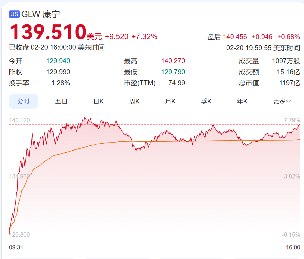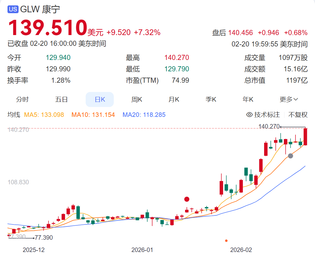 美国股市康宁2026年2月20日收盘139.51美元/股,折合人民币966元/股,而且是小平台整理后创出新高的走势,亨通光电2026年将释放新厂芯光纤的巨大产能,而这个产能则是这是全球第二名到第十名总和的数倍,2026年底新厂将达到设计产能的500万芯公里,亨通光电将位居全球首位,超过美国康宁和长飞光纤,新厂光纤每芯公里售价3.6万元,是传统光纤的1800倍,目标客户为谷歌、微软等科技巨头,所以2026年亨通光电的业绩将出现爆发式增长,老董事长退居幕后之后的新董事长80后的崔巍则更能适应AI等人工智能和高带宽通讯、国家电网年轻一代领导的工作习惯和作风,在赢得高新光纤量产且涨价的高利润基础上,与特变电工、国电南瑞、许继电气等电气设备厂商一起赚取国家电网4万亿投资中特高压建设中电缆的红利;同时,在陆上风电趋于饱和的情况下,赚取海上风电海底输电电缆、通信光缆(2019年亨通光电收购任正非“华为海洋”,避免因美国制裁影响华为海洋承揽世界各国海底电缆和光缆工程)的巨大利润,所以,既使亨通光电短期有高点或做小幅下跌后做平台整理(或向下旗形整理),仍无法掩饰其中期或长期的上涨趋势,毕竟在2026年先进空心光纤世界产量的第一、海缆全球第二、光模块紧跟新易盛和中际旭创的三方面行业景气股,会一直埋没在35.80元/股,这也就是为什么2026年2月初,亨通光电在创新高38元/股后,博时基金、嘉实基金和交银内核驱动混合等基金慌忙在这个价位冒着高点套牢的风险,浮亏也要大量购买亨通光电的主要原因,既然这么多基金敢于冒着套牢风险高位购买,那这个位置必定不是高点,所以,既使节后开盘不涨,调整后的光纤板块,尤其是亨通光电的长期投资价值还是非常高的