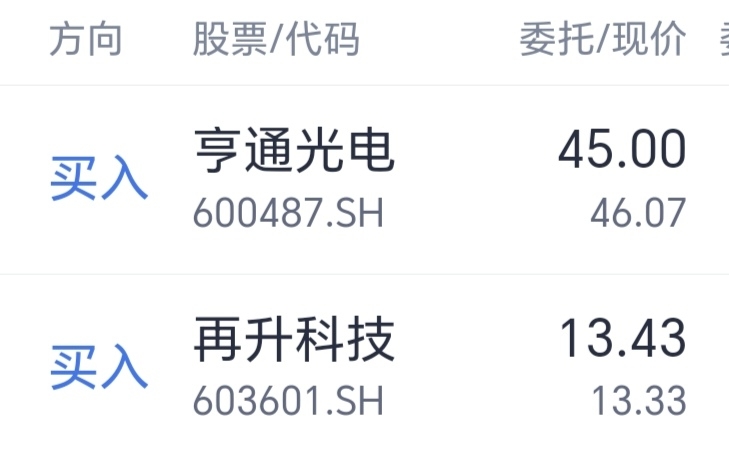集合竞价高溢价委托买入亨通光电&再升科技,实际成交价为开盘价
