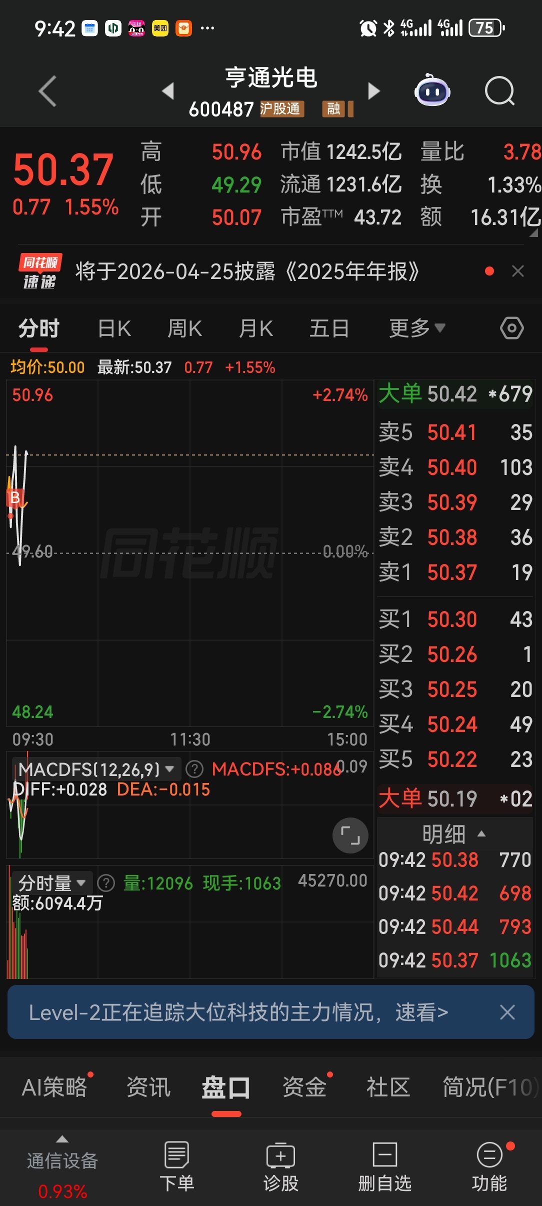 $亨通光电(SH600487)$ 妹子来了接盘了