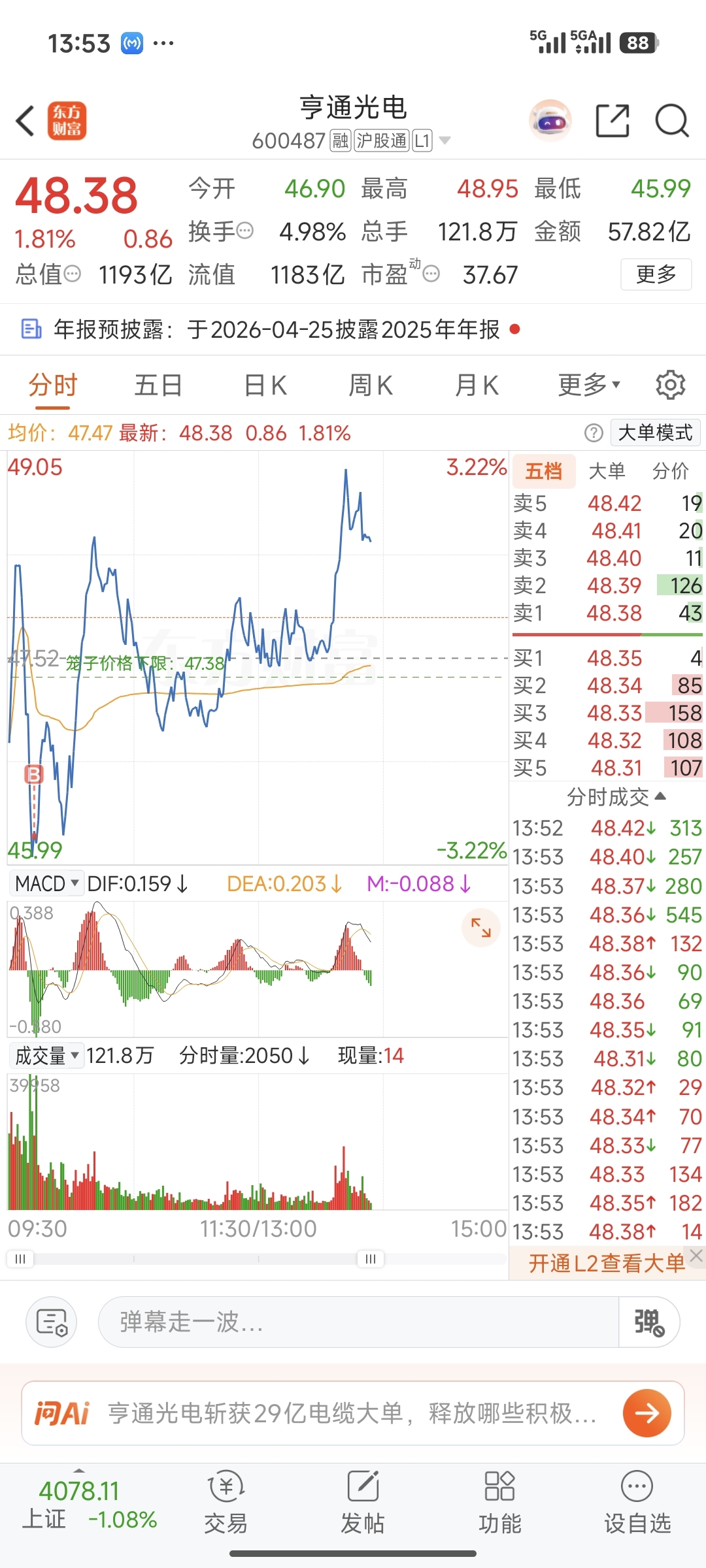 $亨通光电(SH600487)$ 前天卖了,今天接回来