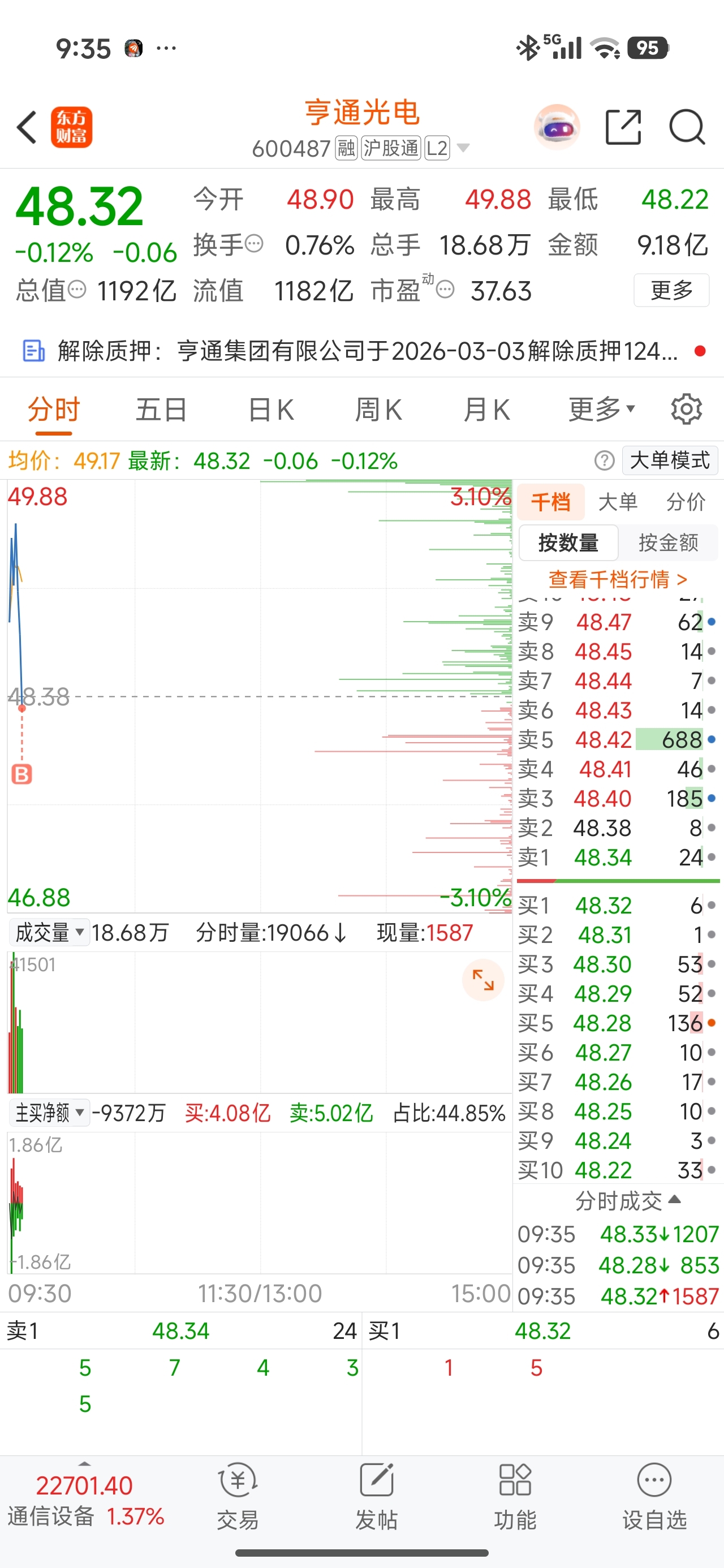 $亨通光电(SH600487)$ ?什么意思啊我看红盘买不进就随便挂在48.3你真吃啊