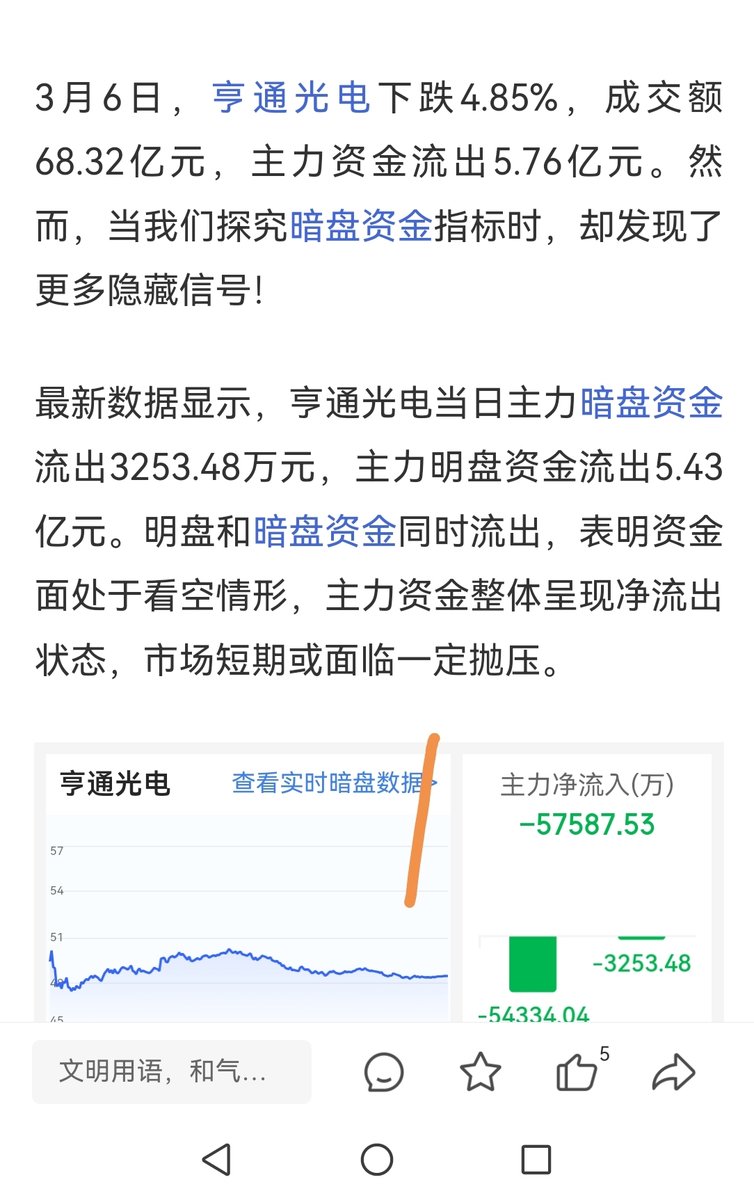 $亨通光电(SH600487)$ 昨天进10个亿,今天出6个,还行还行,上午看着是想拉红的,结果下午开盘突然就砸了,主要还是今天光纤板块不太行,特别是长飞港股,大盘大涨的情况下,尾盘砸到10个点,通鼎,烽火都不太行。看周一会不会修复吧,还是看好能上60~