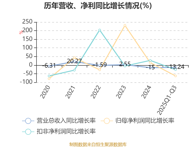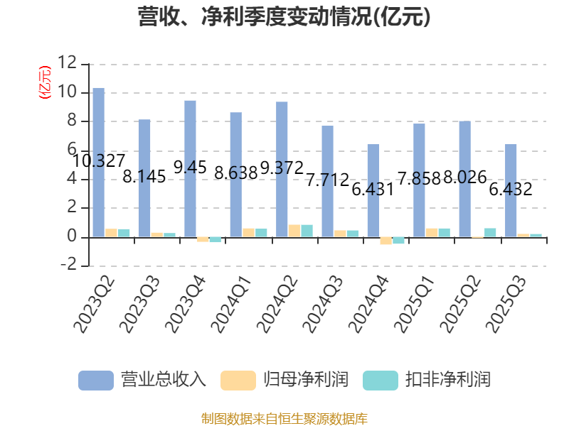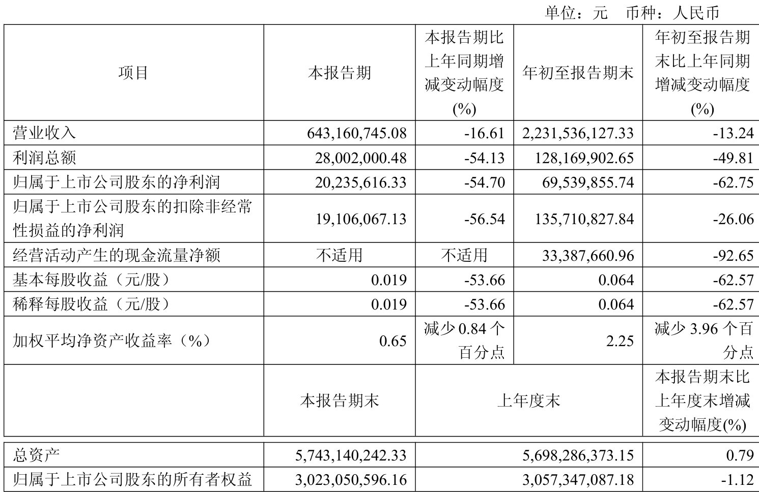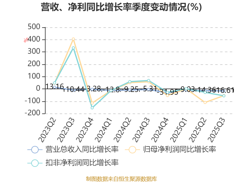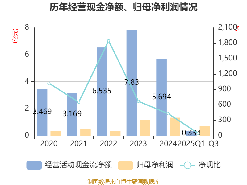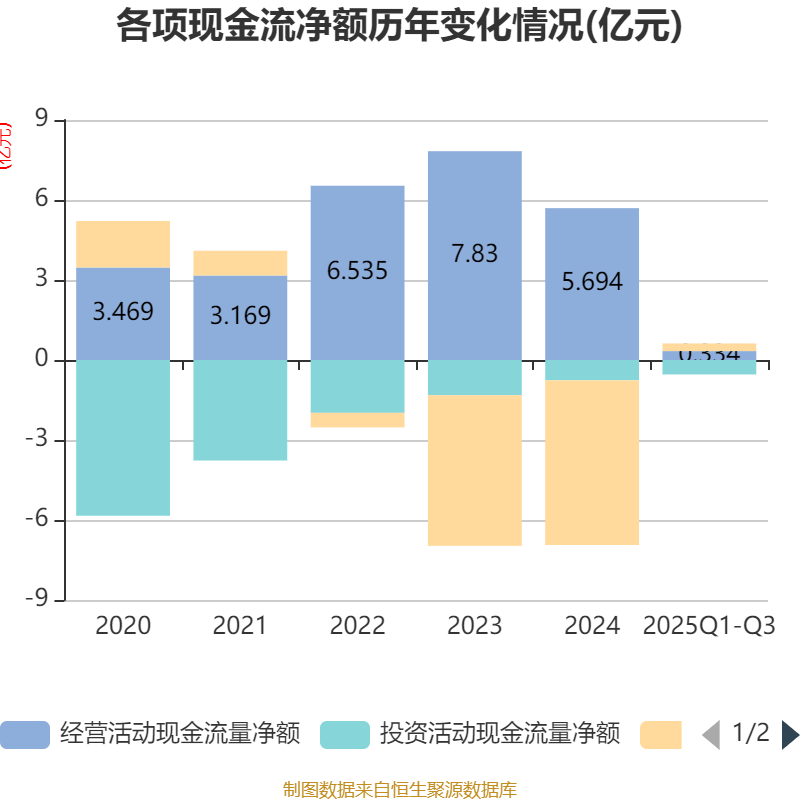 2025年前三季度,公司经营活动现金流净额为3338.77万元,同比下降92.65%;筹资活动现金流净额2859.59万元,同比增加3.71亿元;投资活动现金流净额-5422.36万元,上年同期为-5071.9万元。